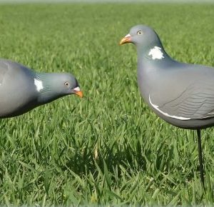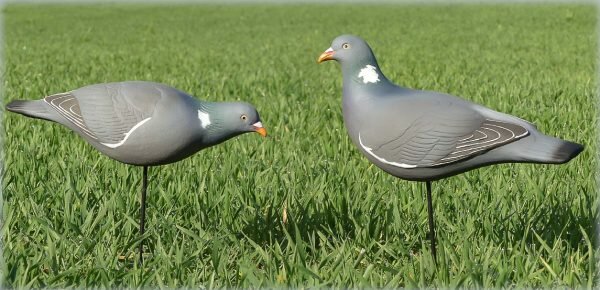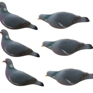 In the package you get 6 wood pigeons with 2 different head positions – 3 x upright head position and 3 x feeding